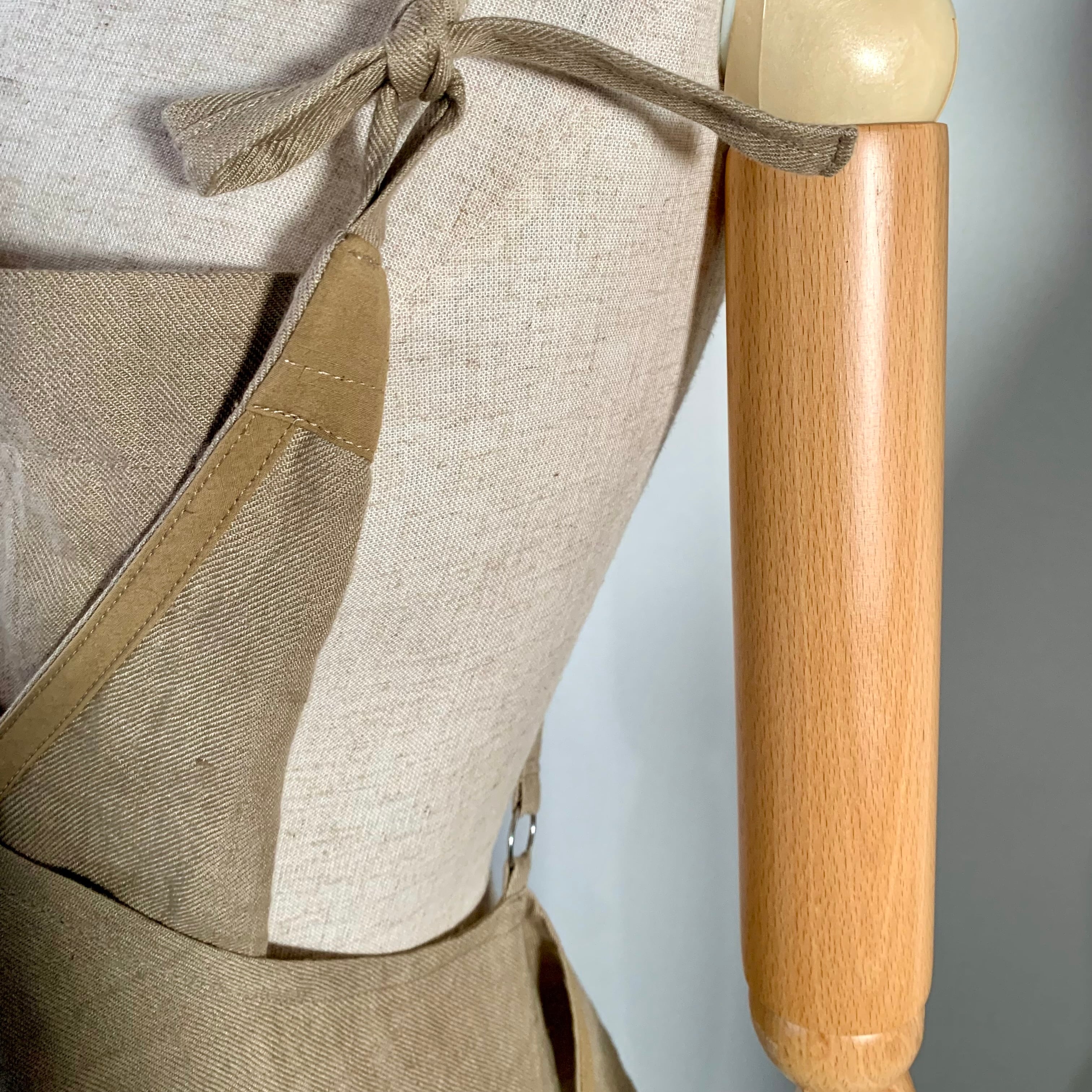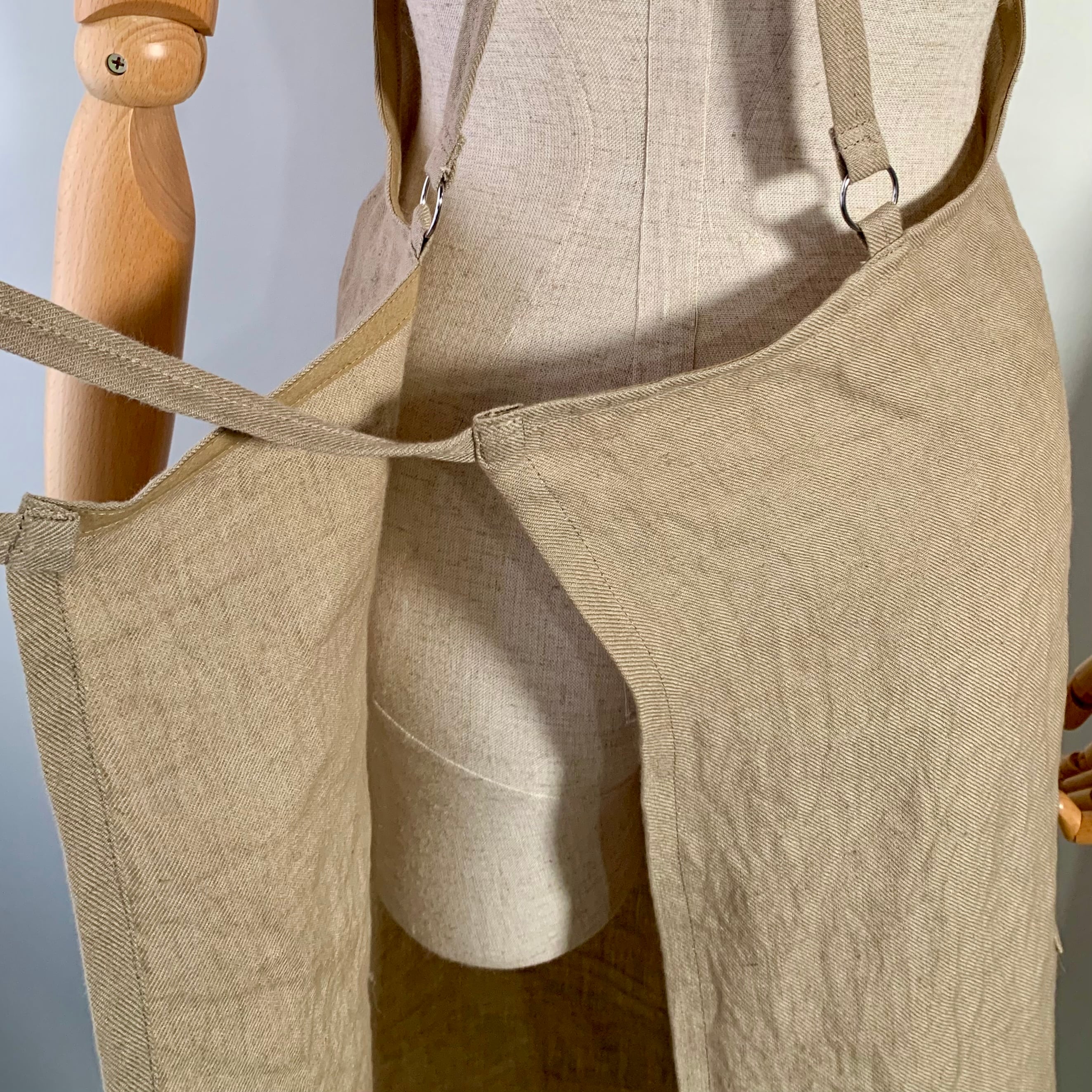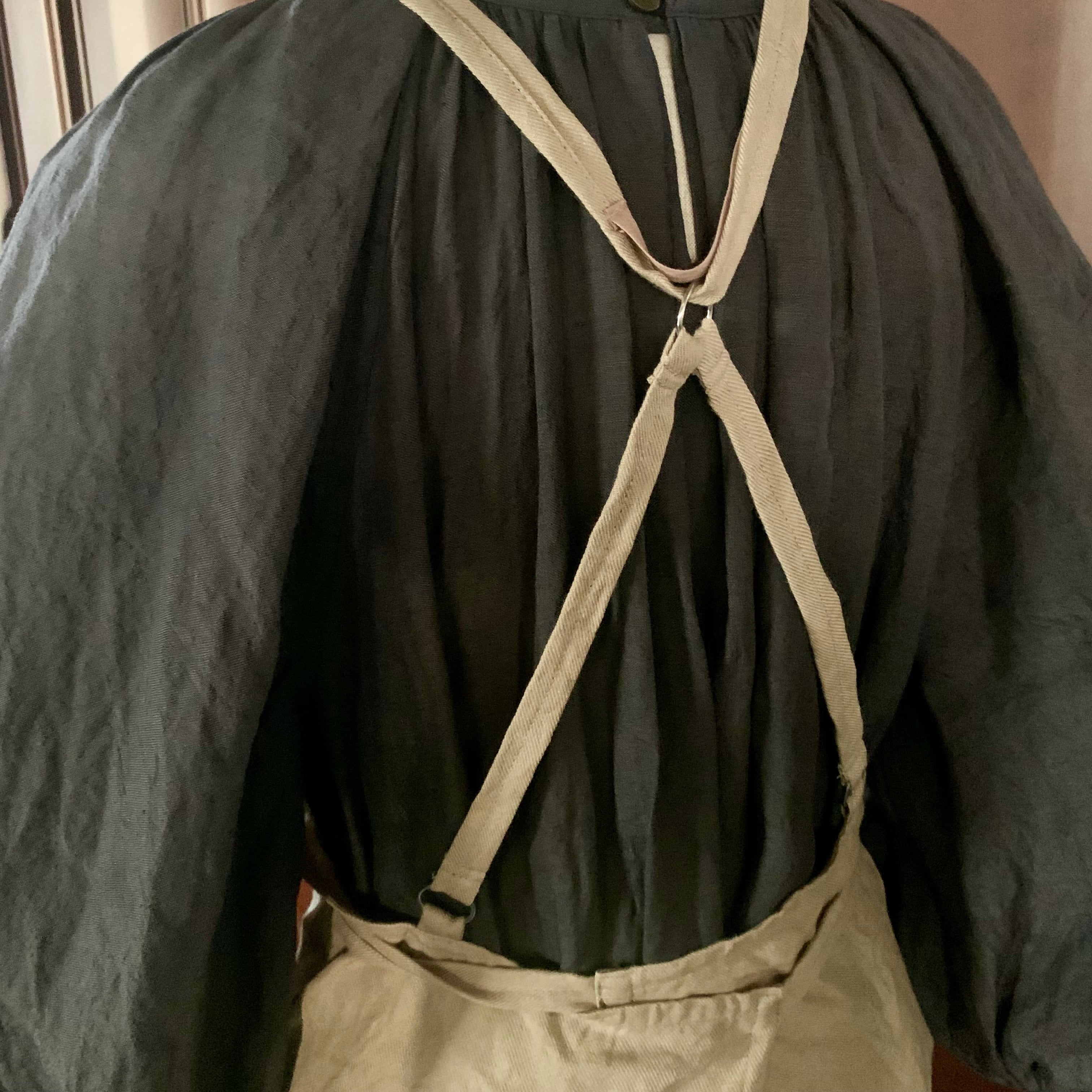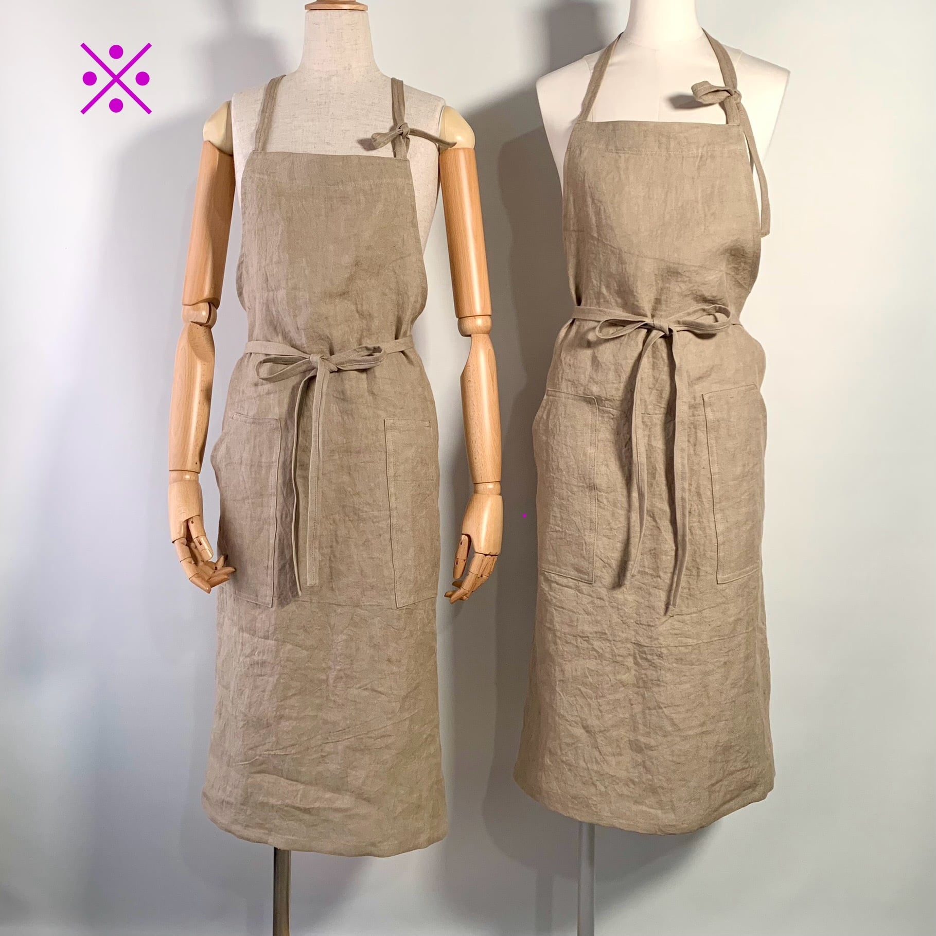 肩ひもを背面でリングに掛けるタイプのエプロン。