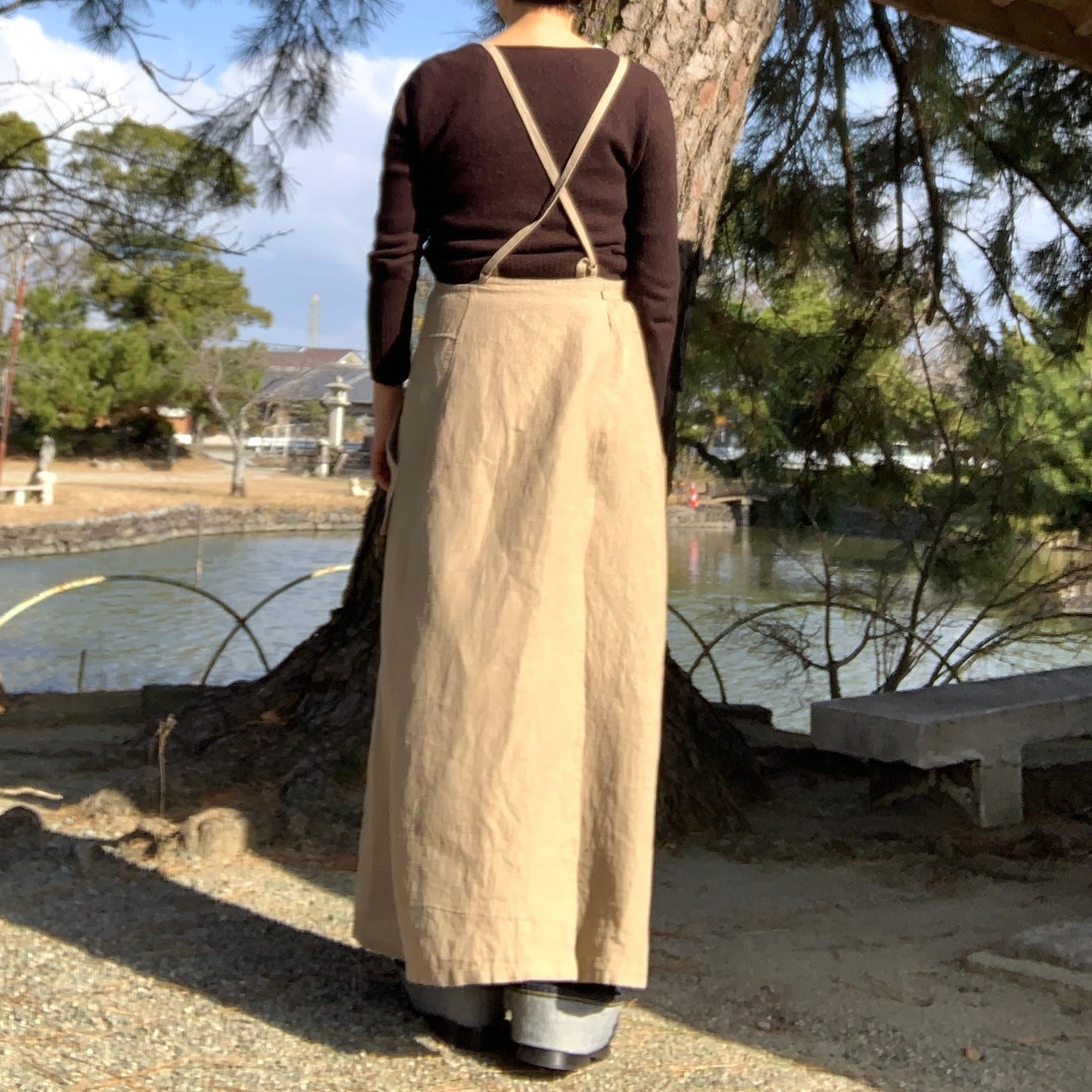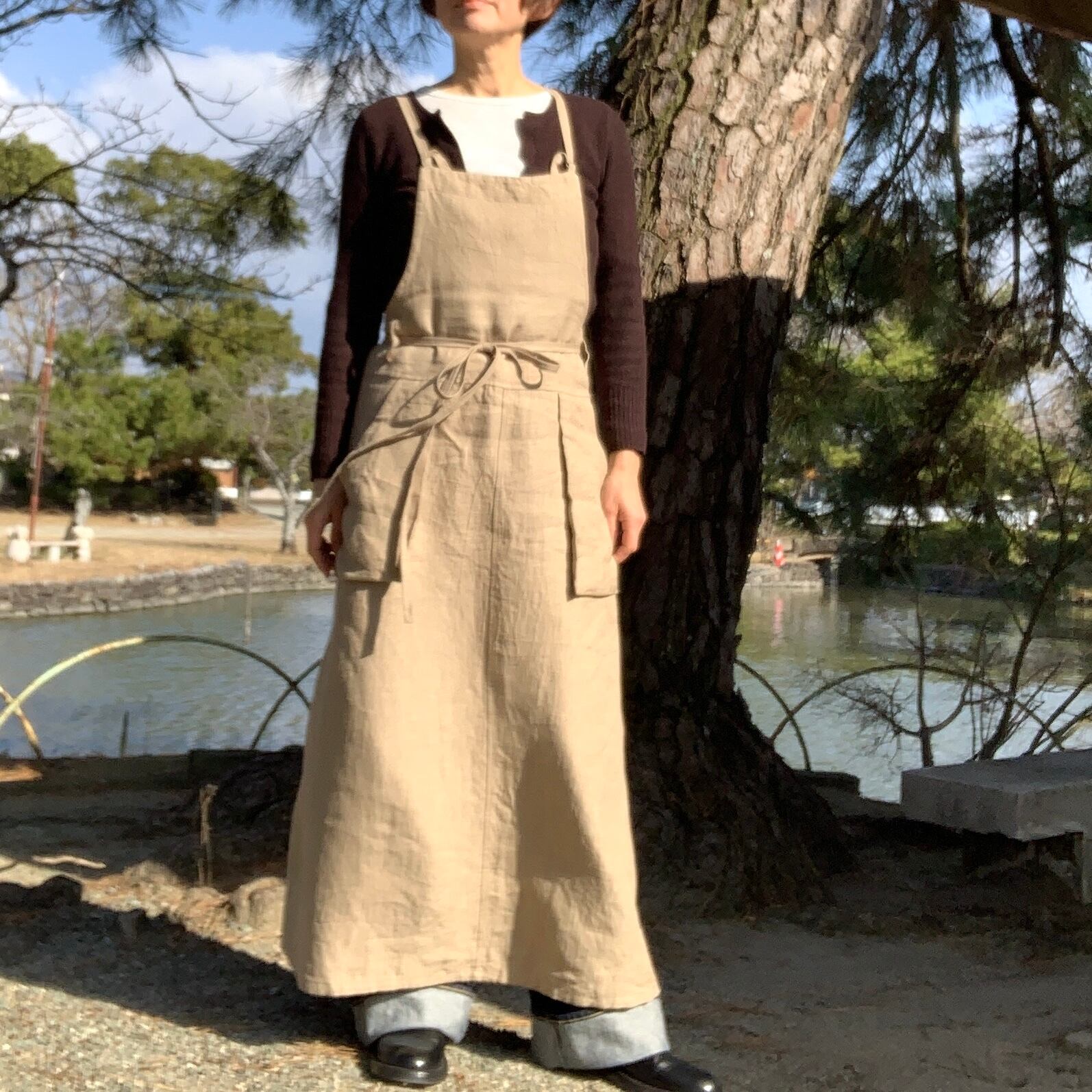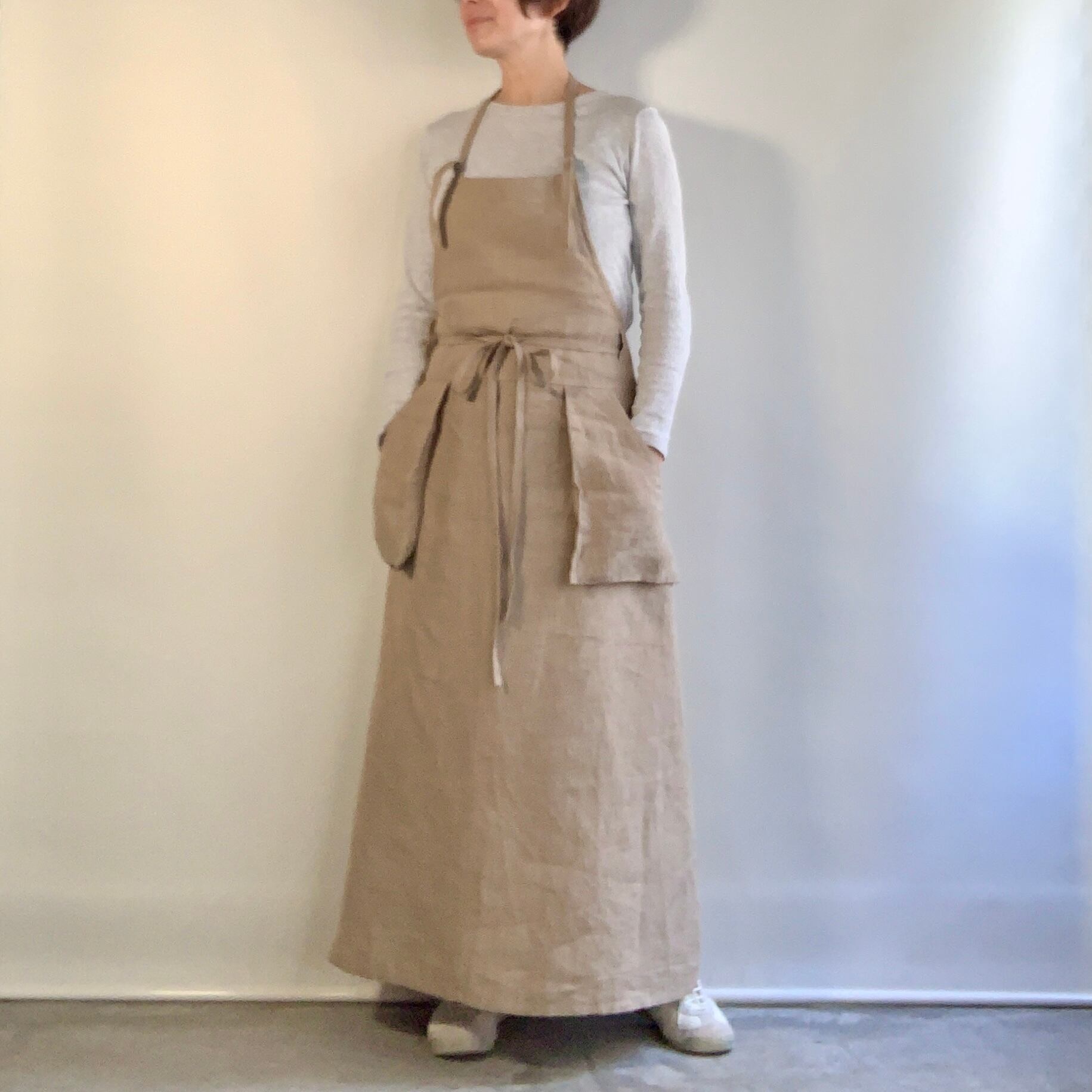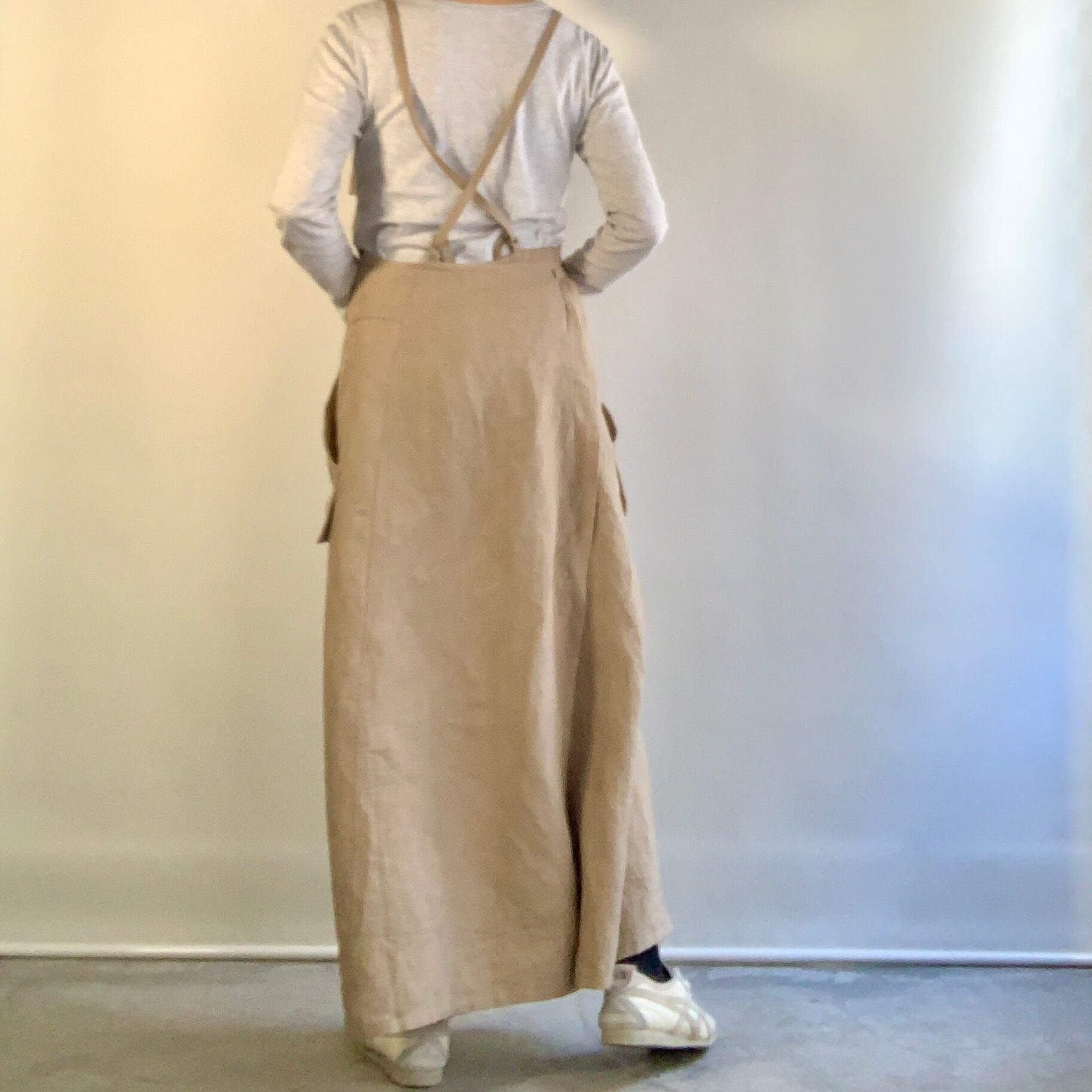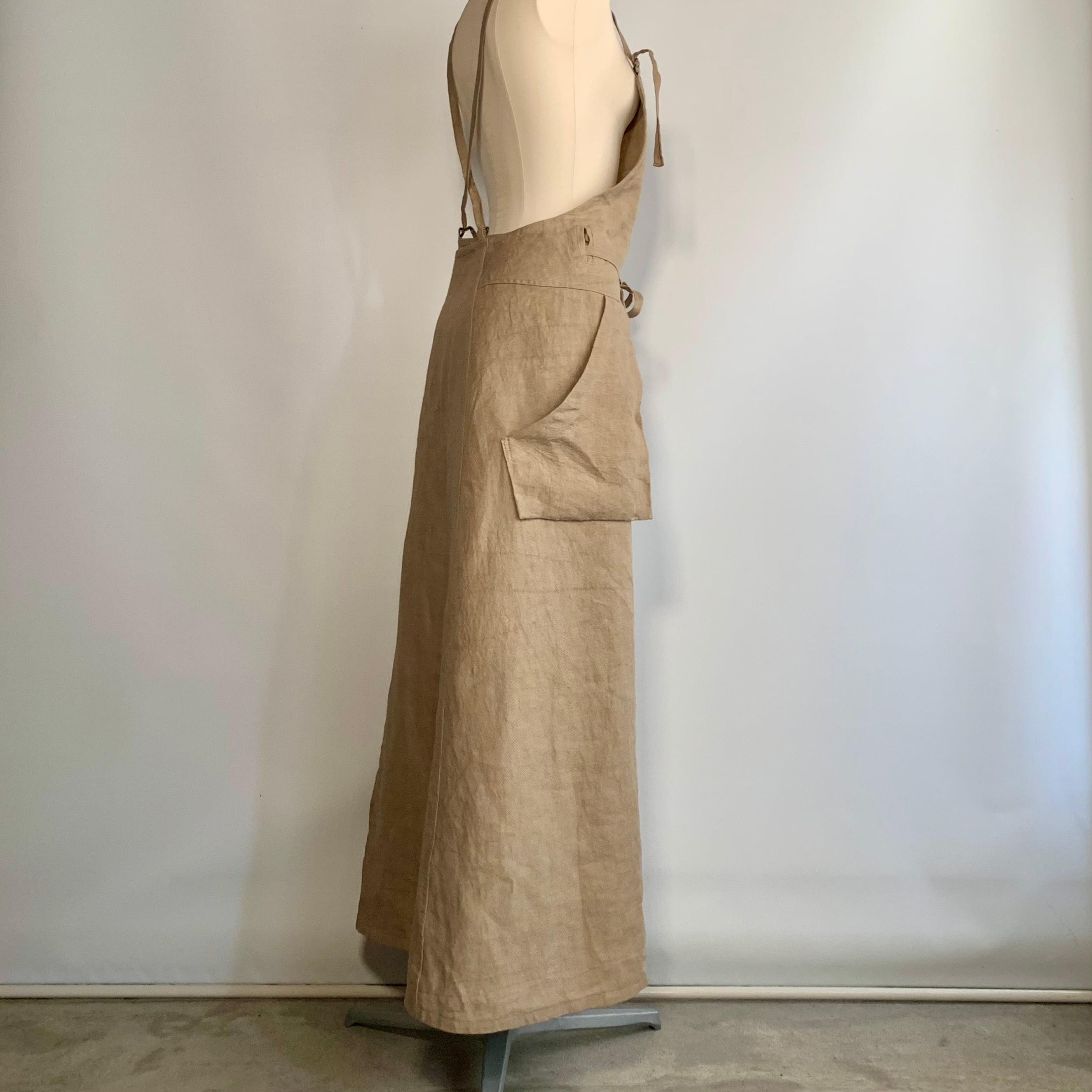 リネン100% 肩ひも2⁻wayのロング丈のサロペットドレスです。