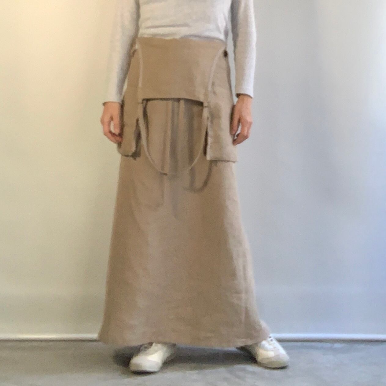 夏場は首掛けをはずして前に垂らせば、スカートに。
