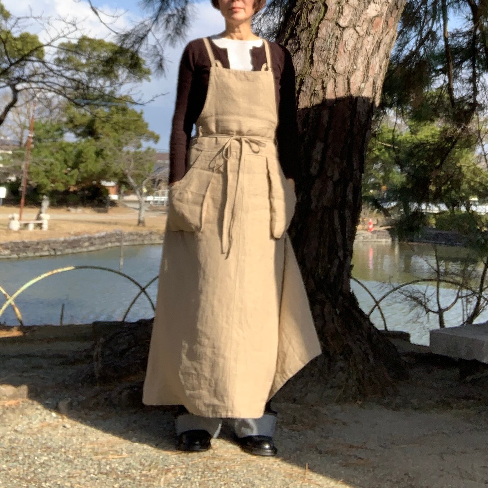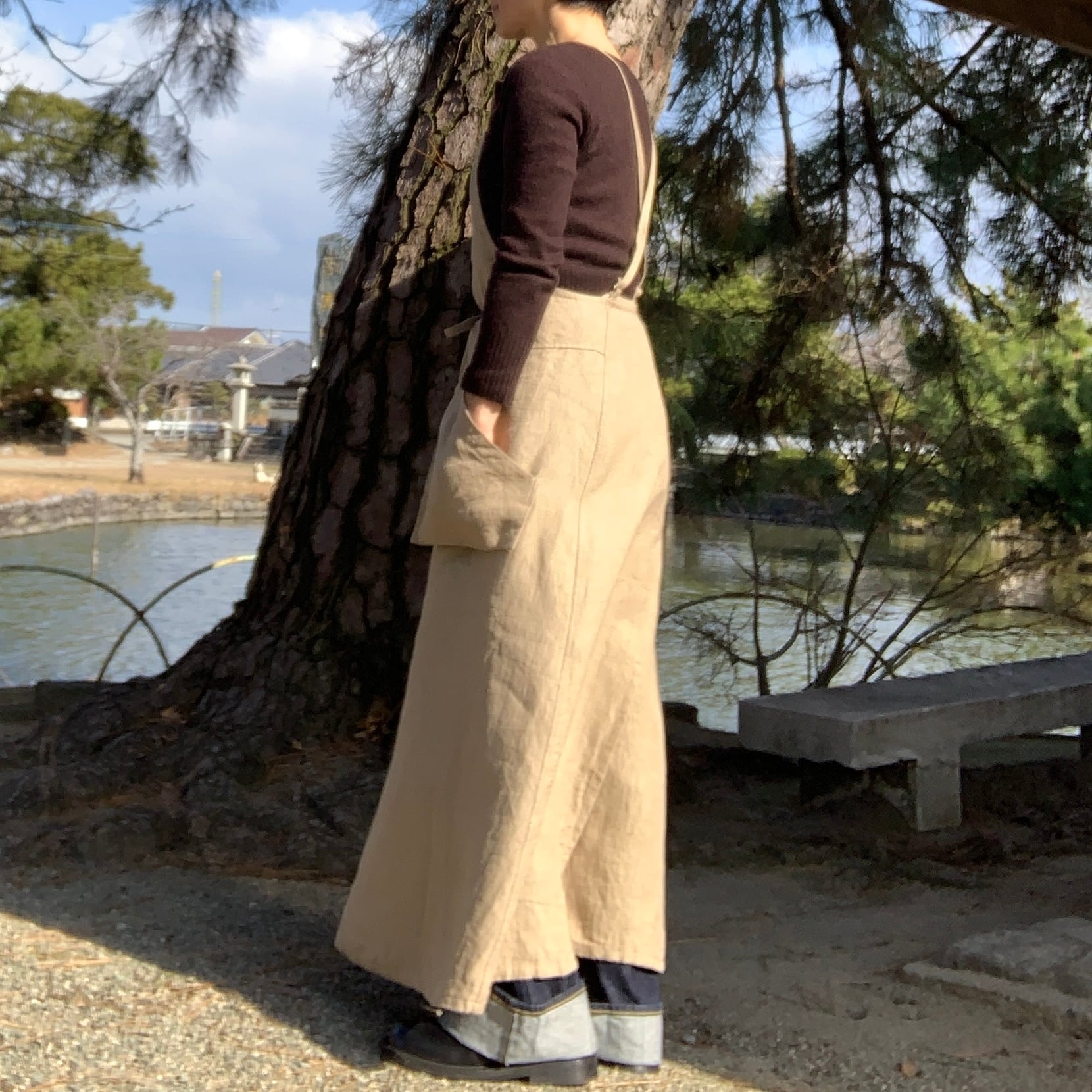 ひざもカバーしてくれるので、冬は重ね着で温かく過ごせます。