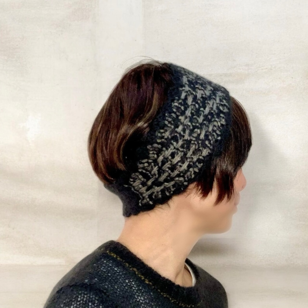 黒髪や明るめの髪の色にも、自然になじんでくれるチャコール系の配色は、クールで渋い、でもモヘヤのふんわり感がやわらかい印象も演出してくれます。