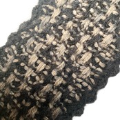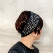 ・2種の毛糸でランダム格子柄のように編み上げたヘアバンド。それぞれの糸は単色だったり、撚糸して色が混ざり合ったり。