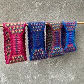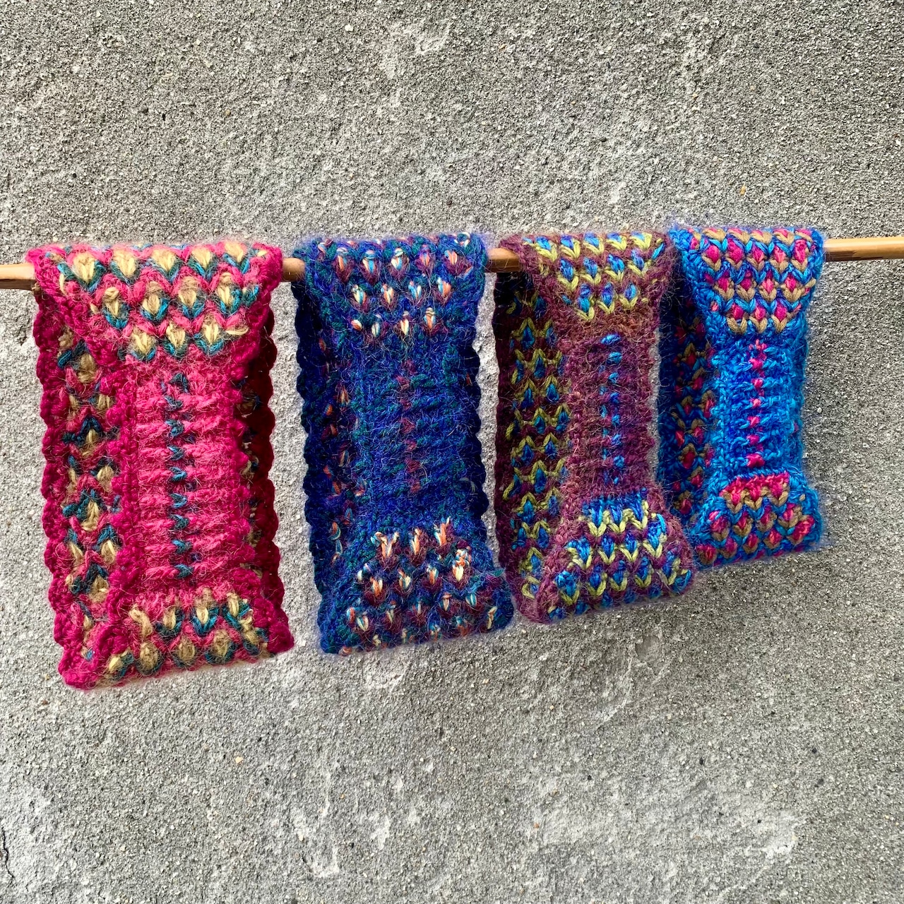 どの色も、それぞれ2色を引き揃えて編んでいるので全体の色味の奥行きがあり、さまざまな髪の毛の色に合わせてほしい配色です。