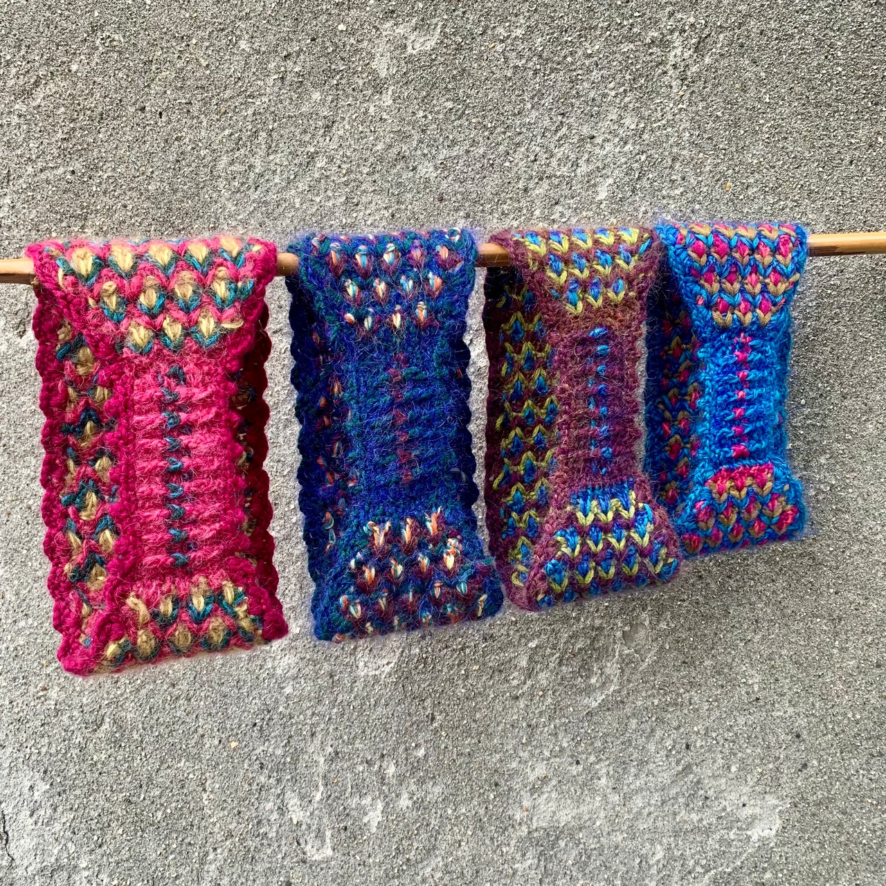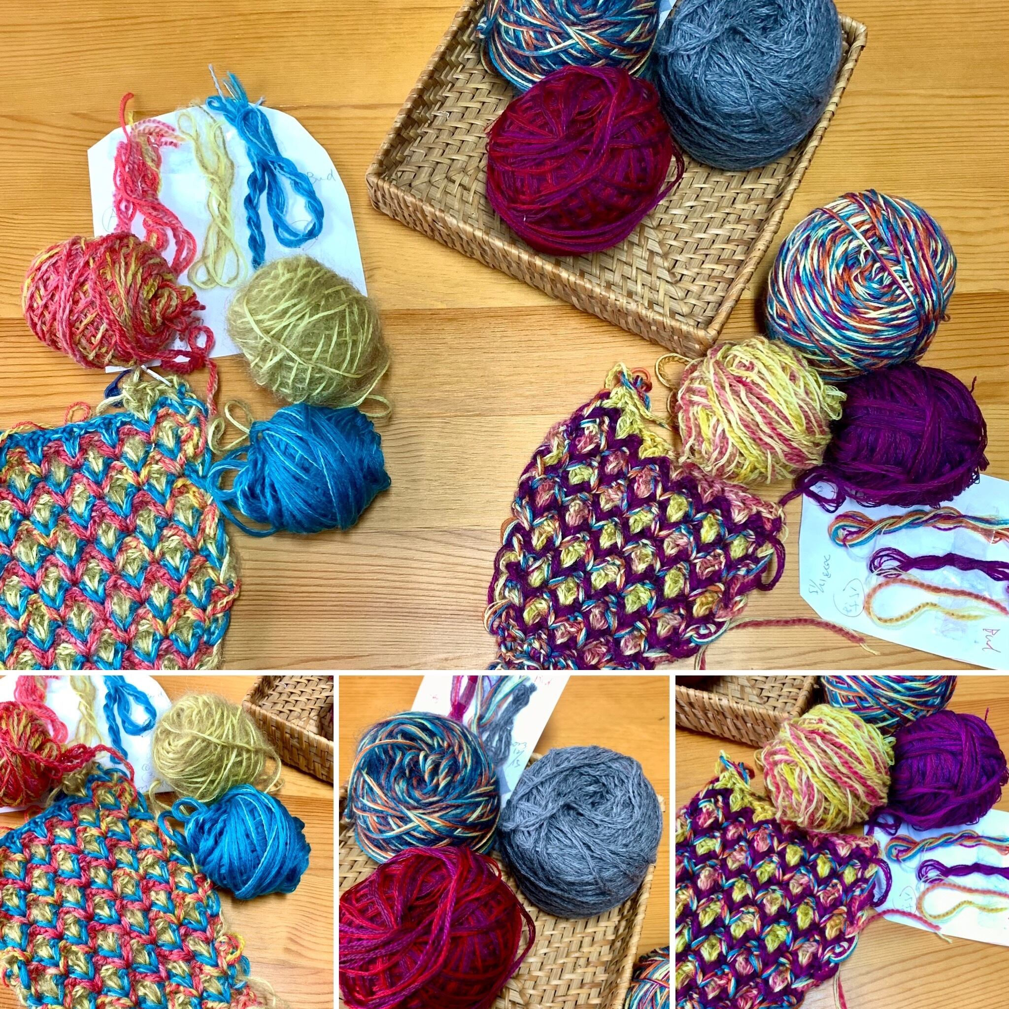 糸: ウールは並太程度 細い糸を引き揃えて編むもお勧めです。