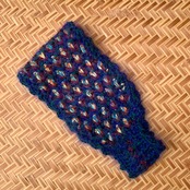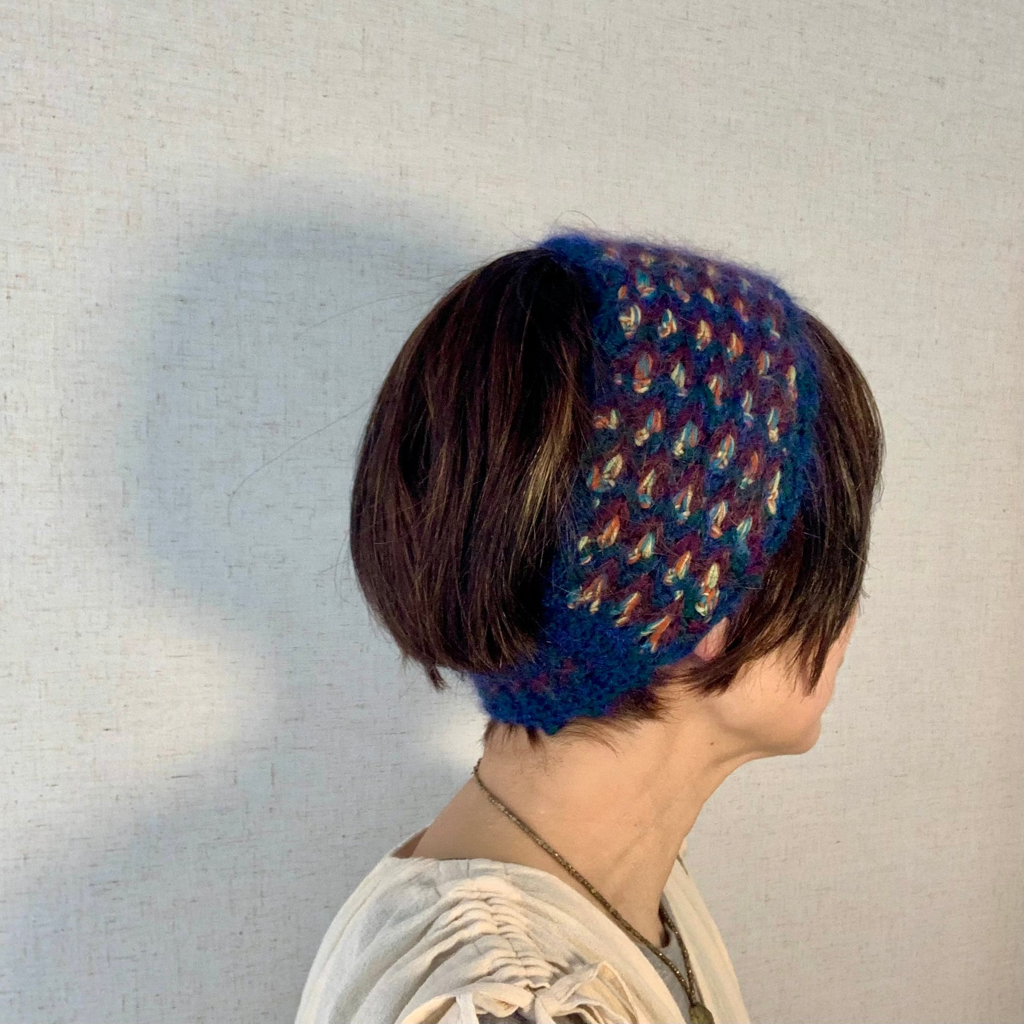 ・細巾部分も伸縮性のあるかぎ針編みを利用してゴム無しでも頭にフィットしやすくなっています。