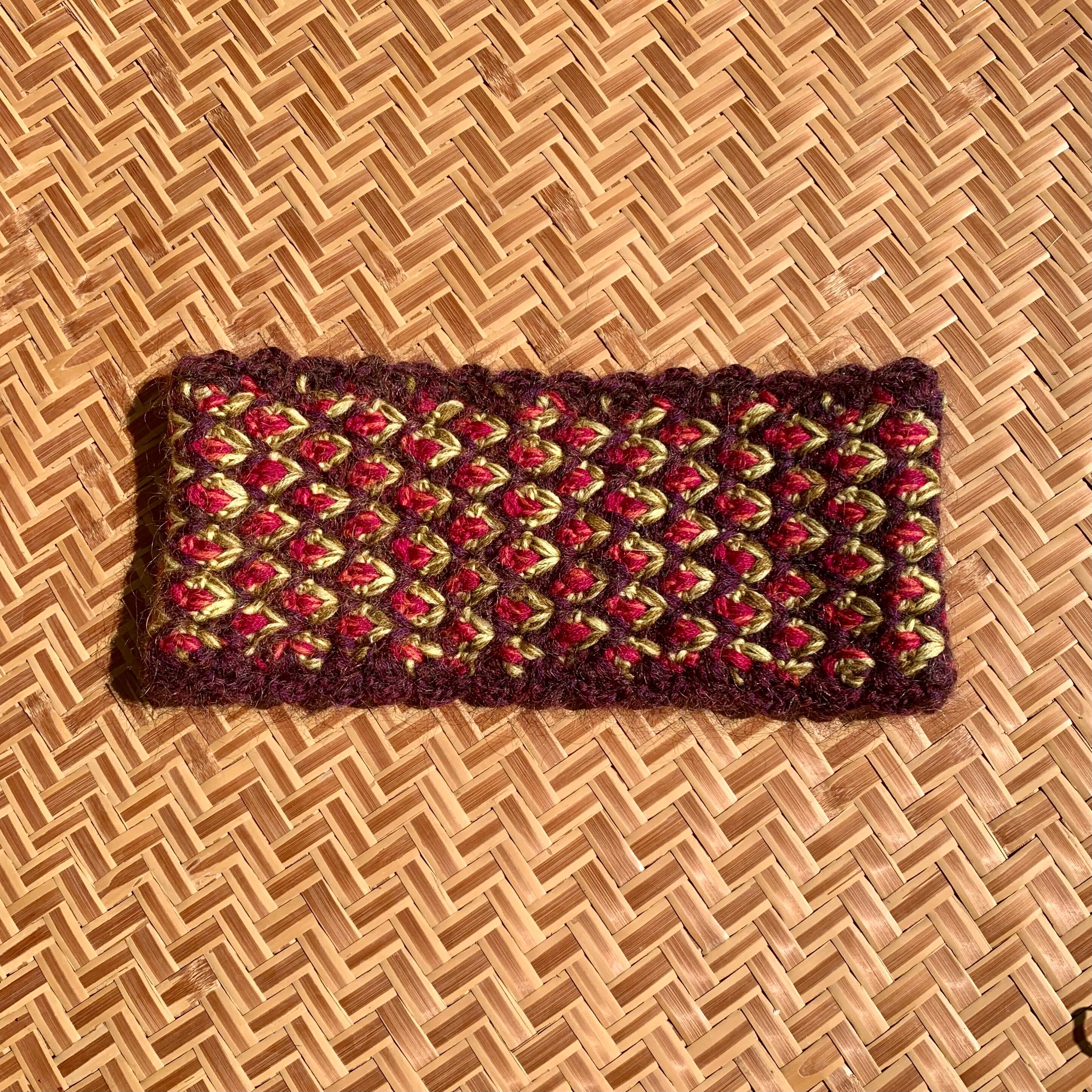 立体的なひし形模様立体的なひし形模様のかぎ針編みのへアバンドです。