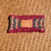 ・周囲はピンク×マゼンタのモヘヤウール糸のクロシェ編みスカラップ状の縁取り。