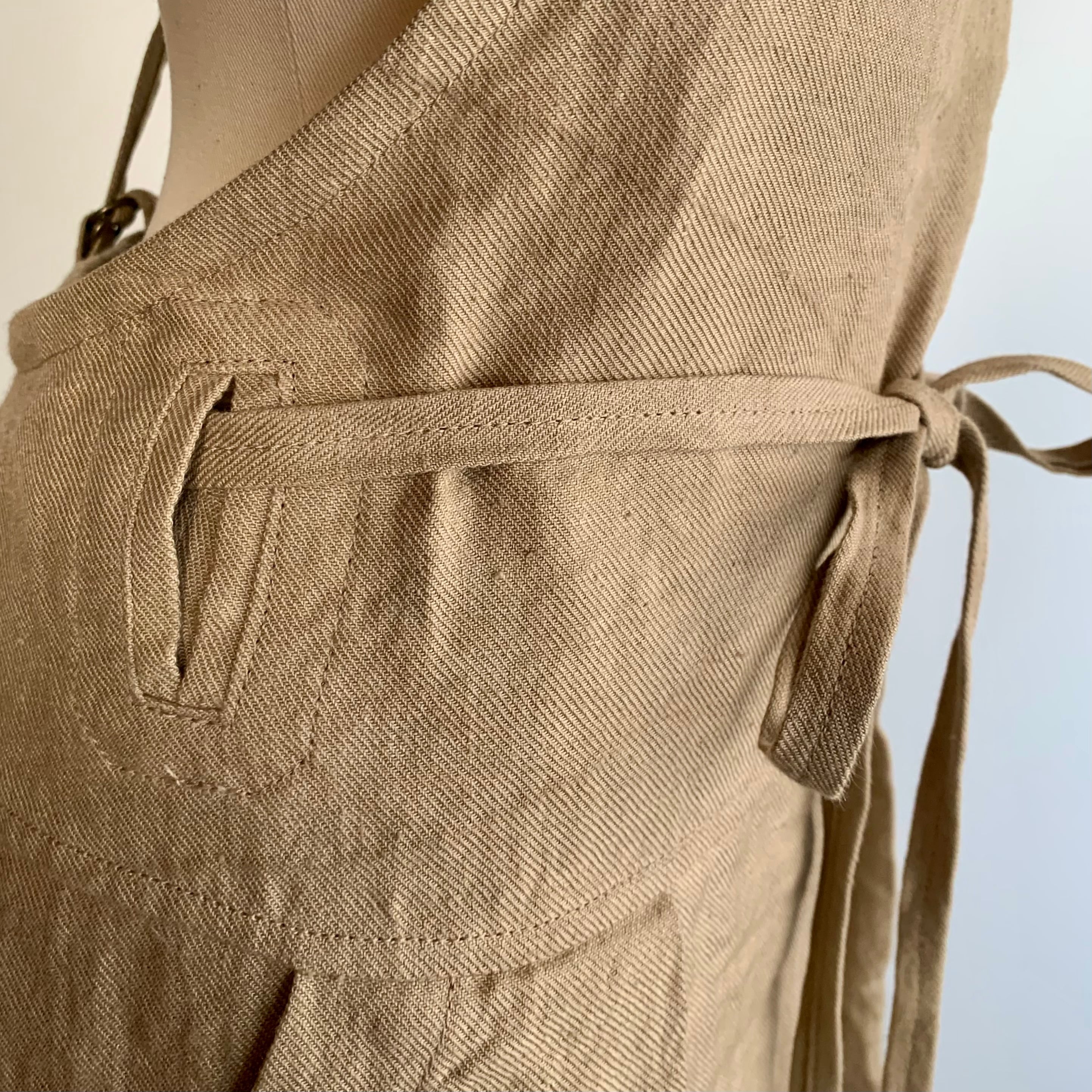 ・着るときは、後ろでラップするのですが、左手に持ったウエスト端のひもを、右脇の
