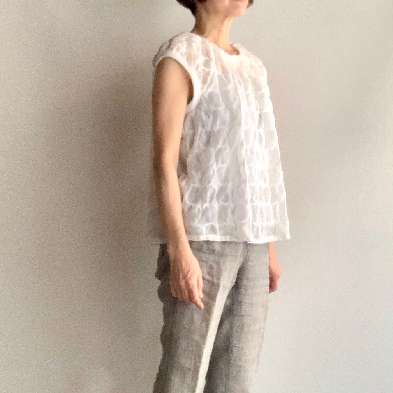 ・透け感があるので、キャミソールやタンクトップをインナーに着用されると安心です。