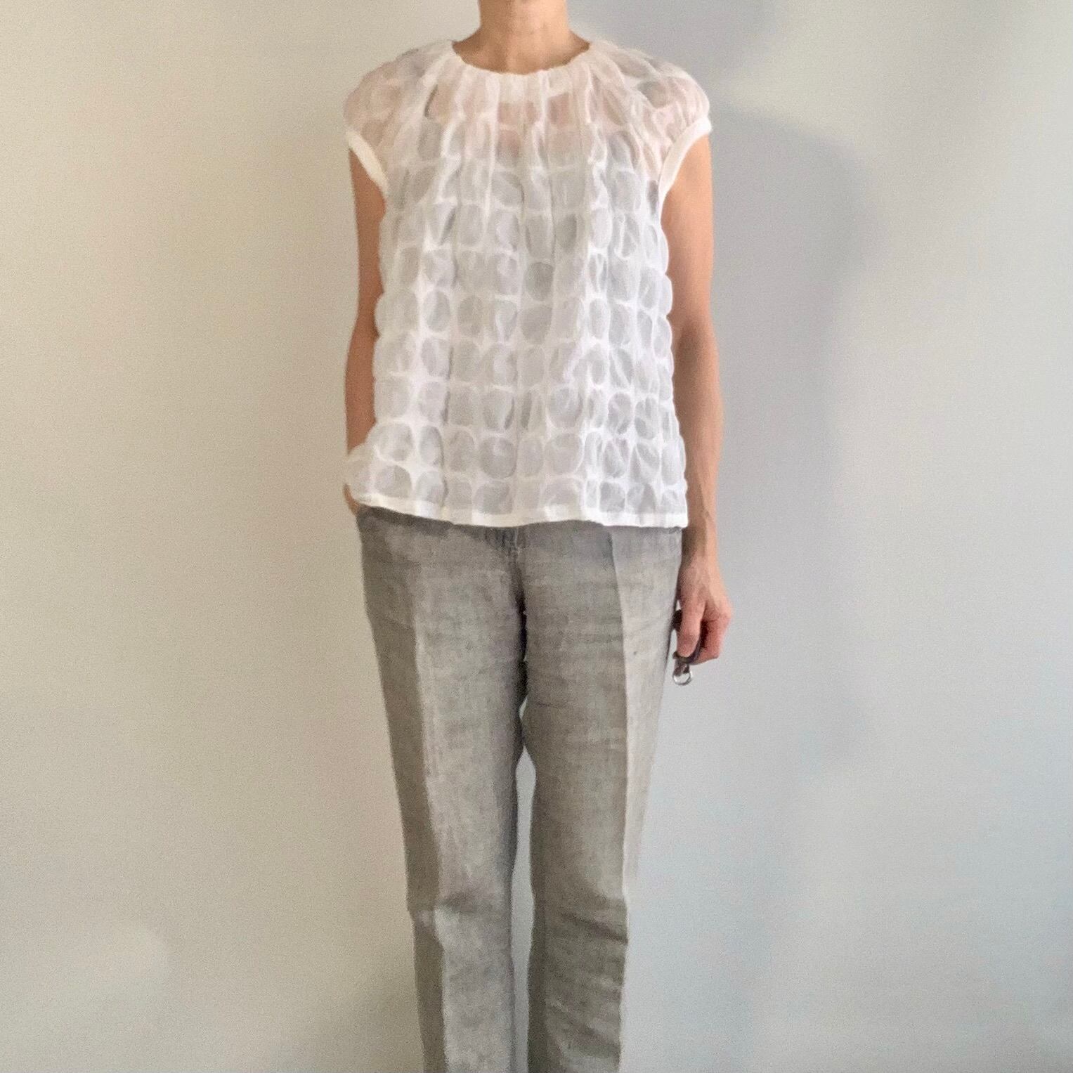 薄地の本体とマットなニット地の素材感の対比がユニークな仕上がりとなっています。