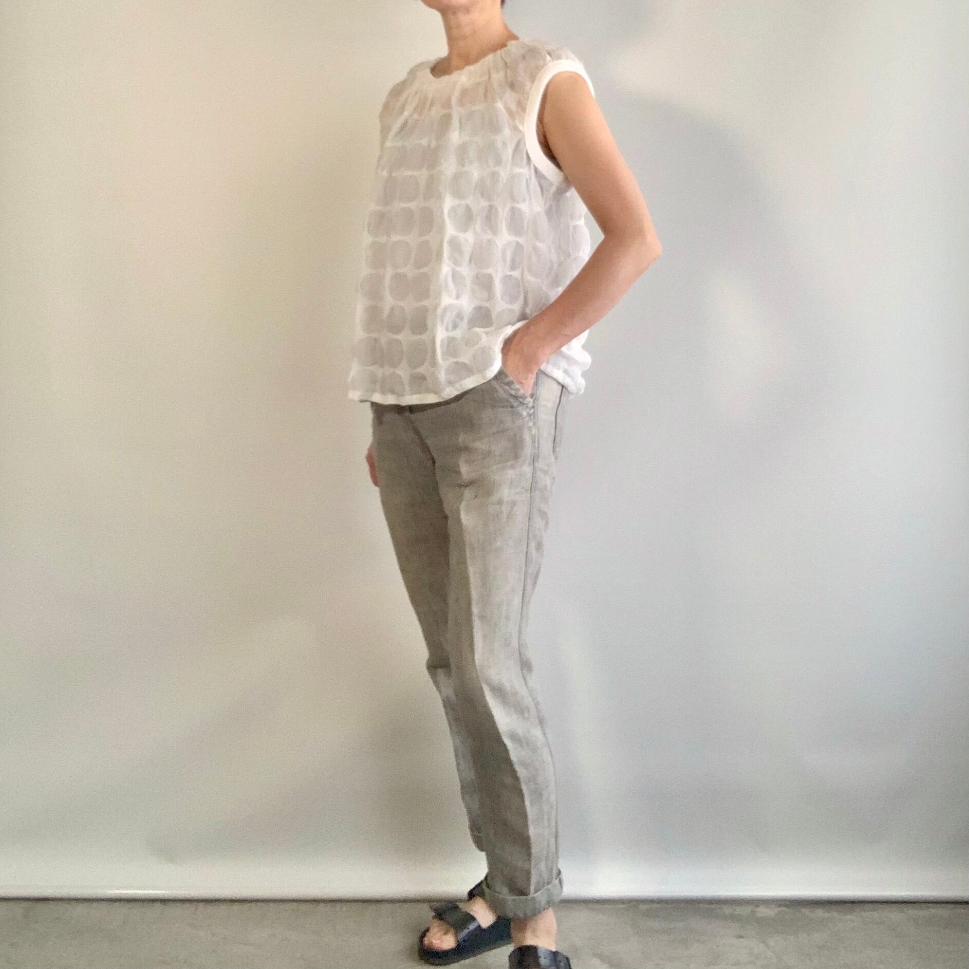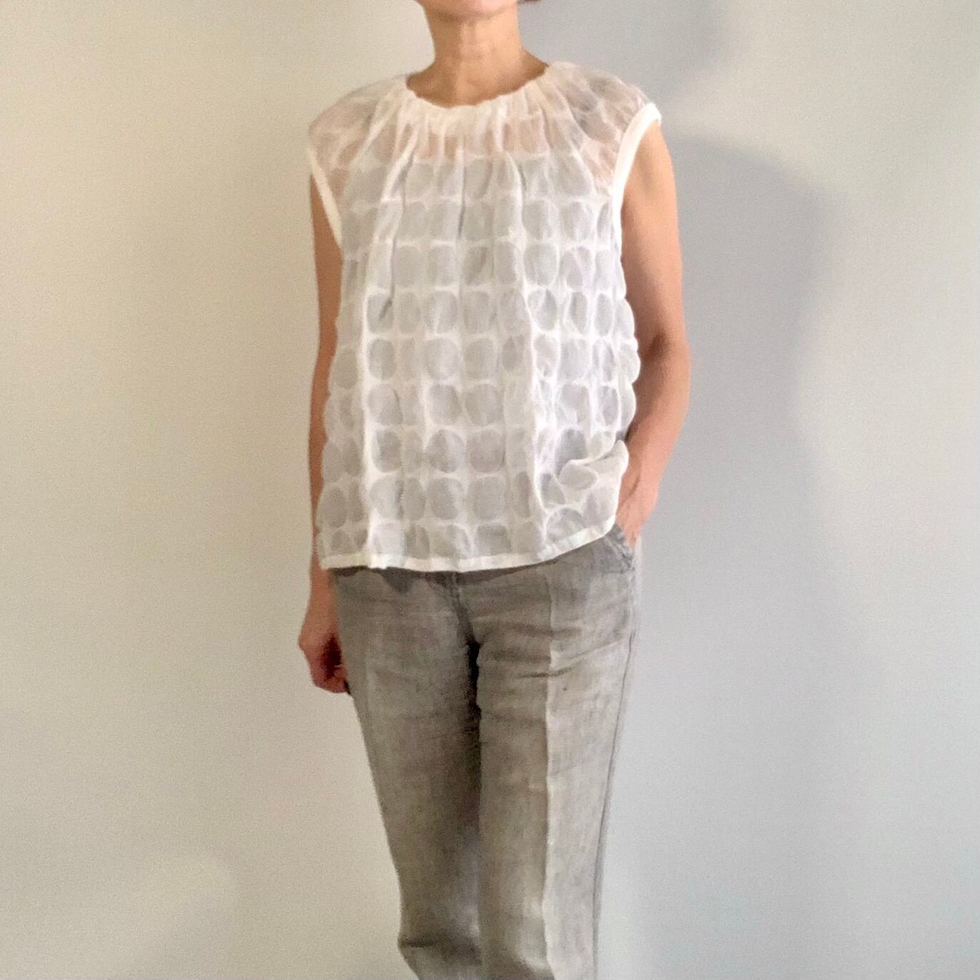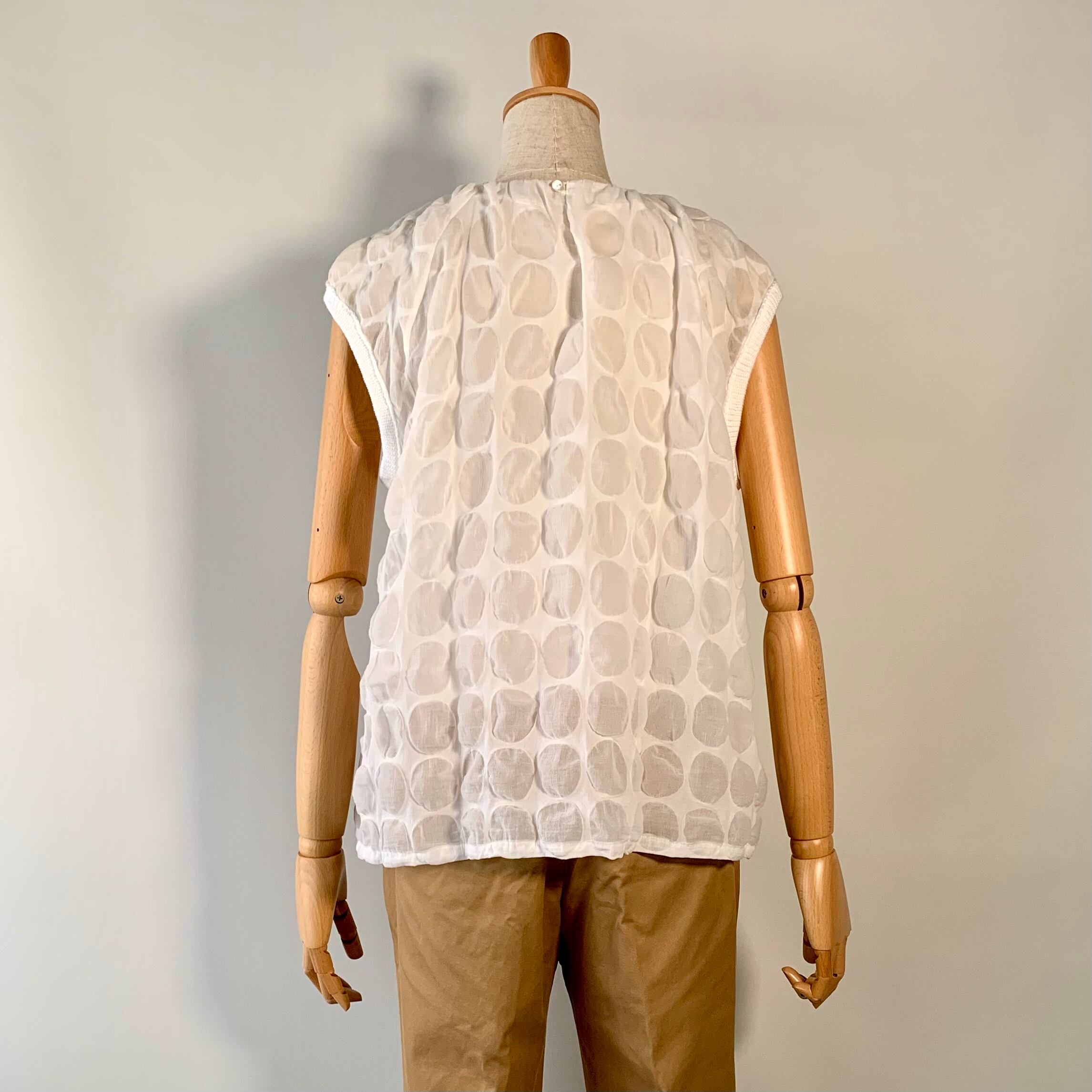 コットン ドット柄 ニットカフの袖なしブラウス c/#WH