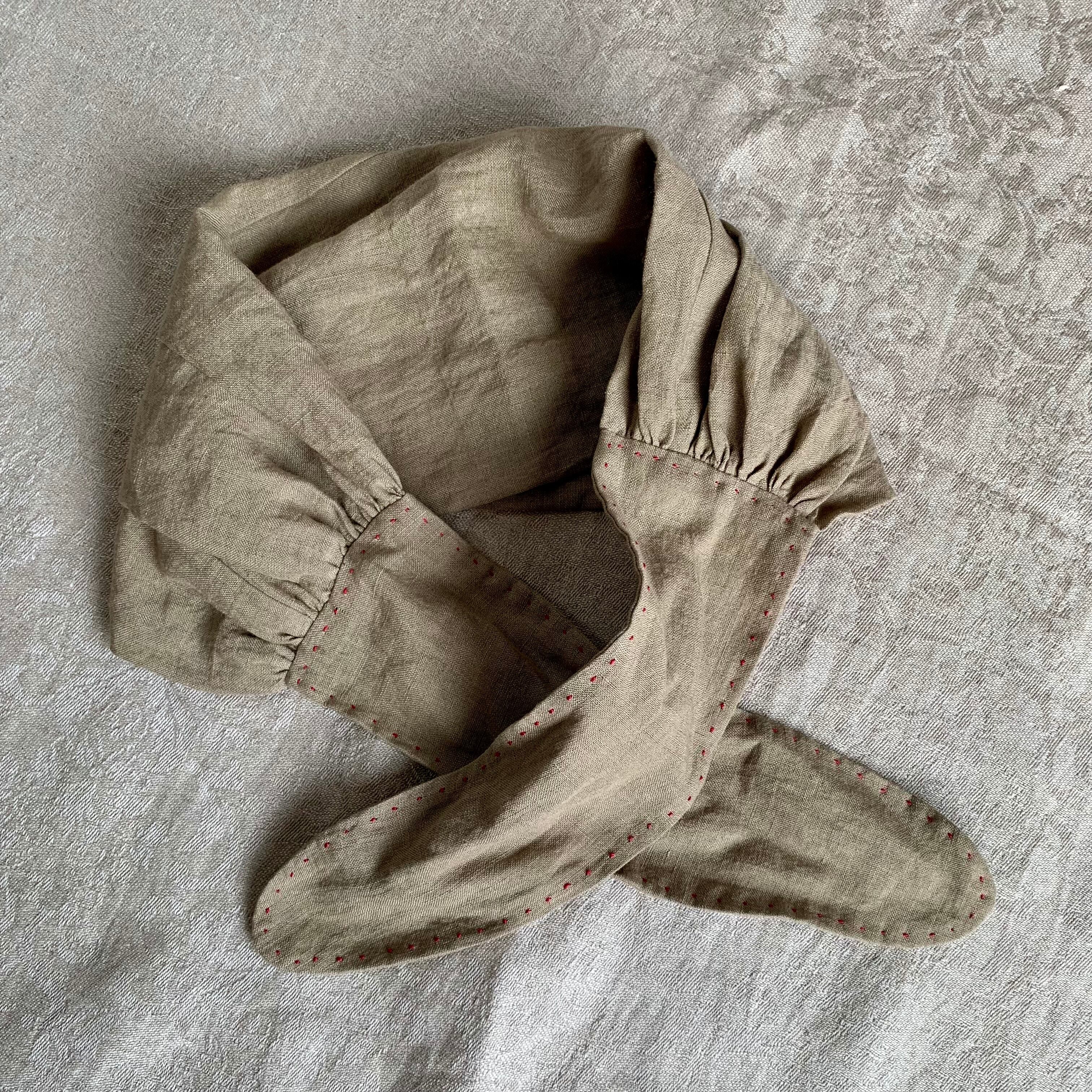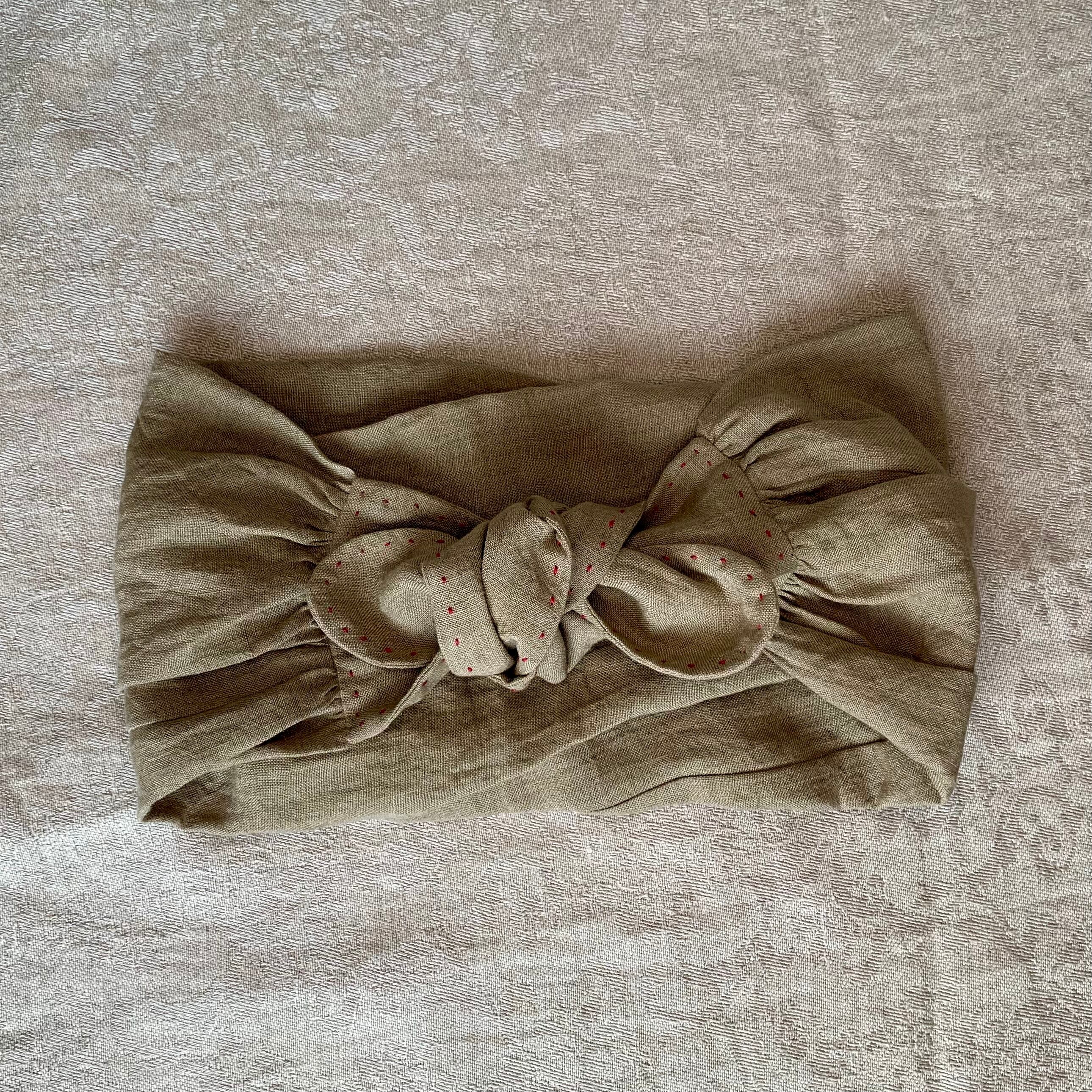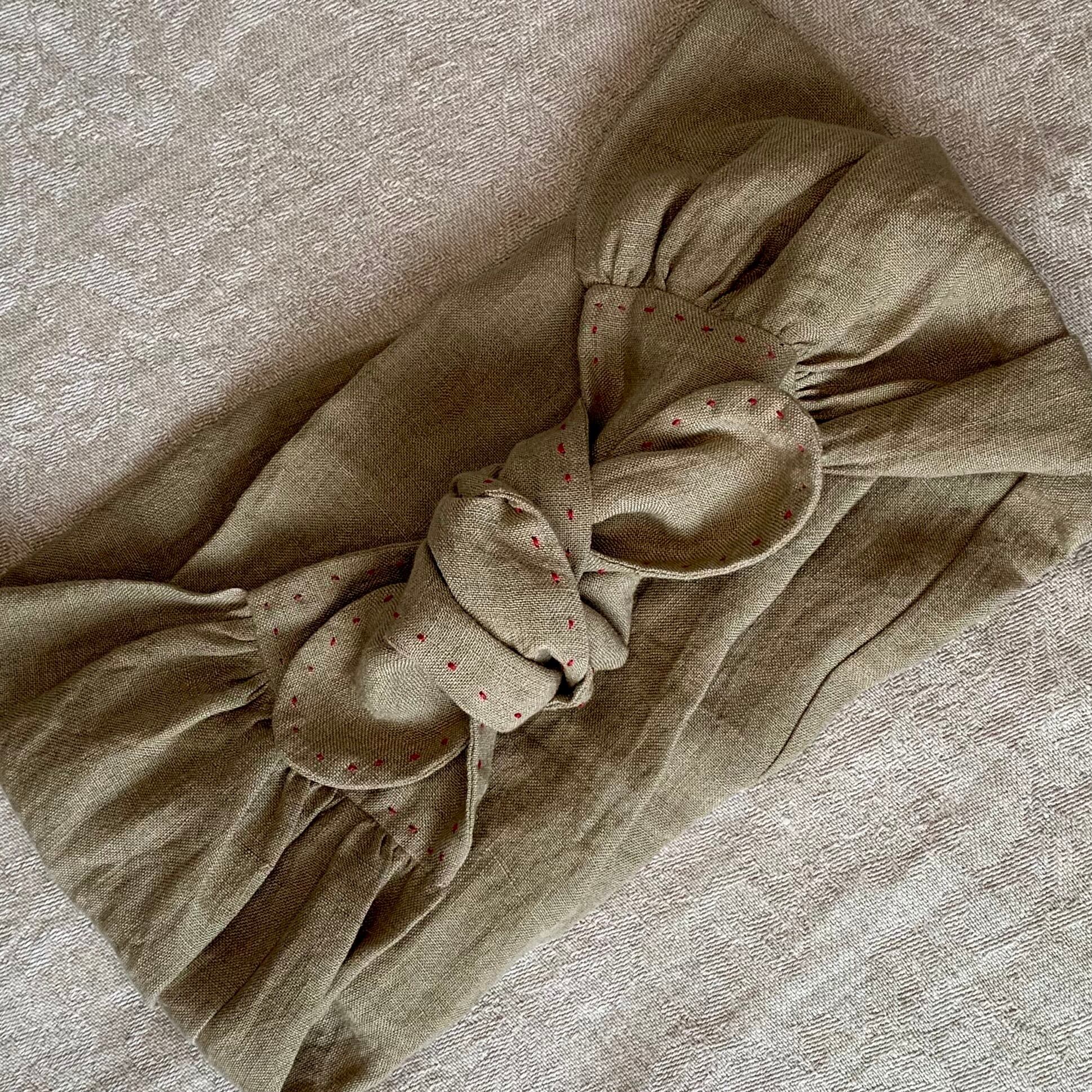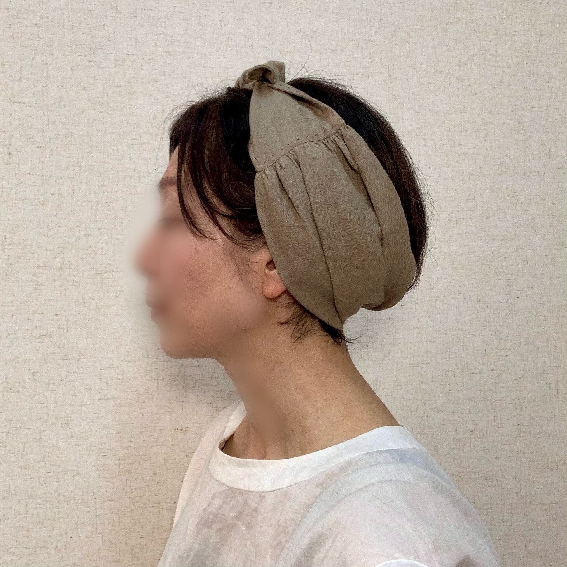 リネン100% カーキベージュの素材使用した結ぶタイプのヘアバンド