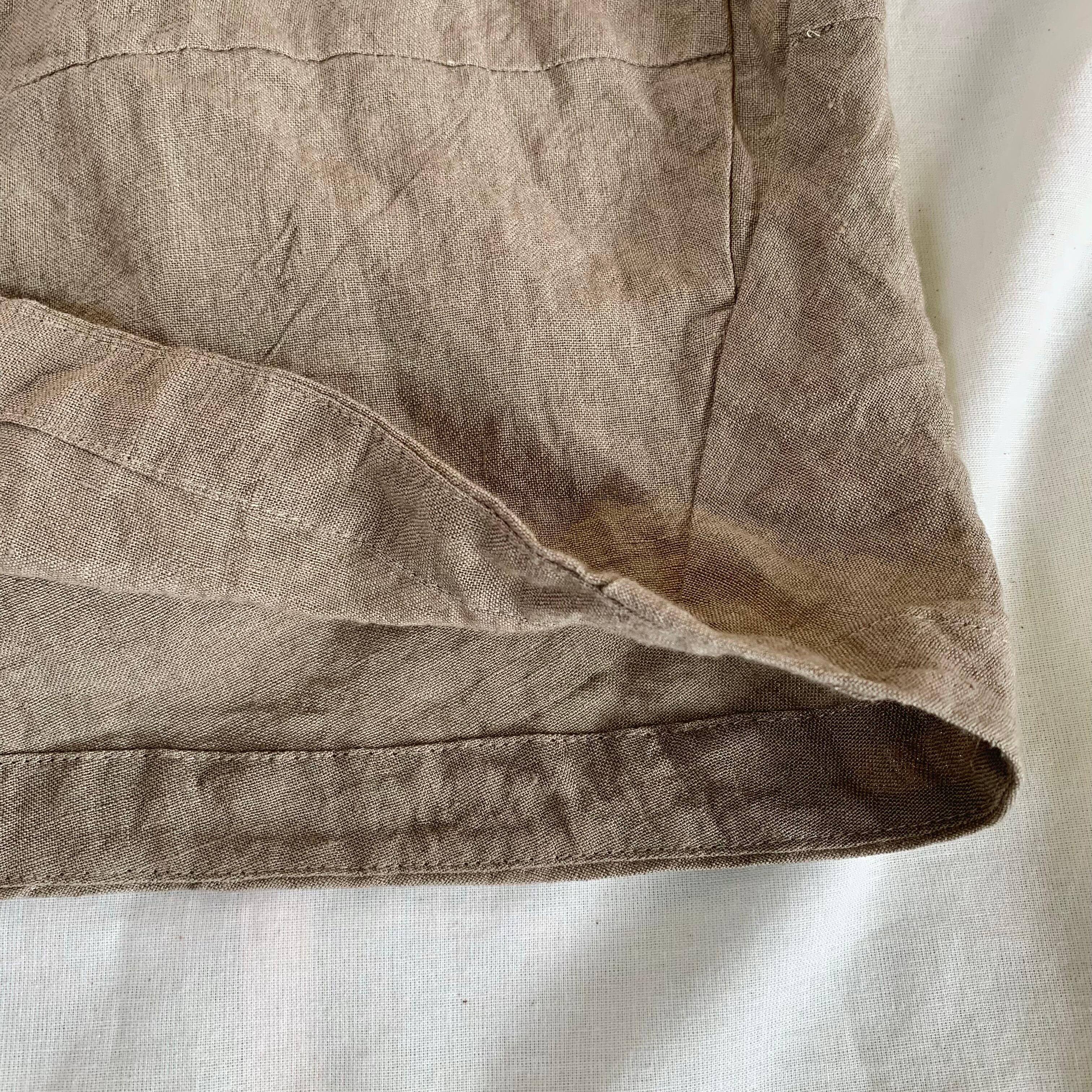 ・カーキベージュのリネン(麻)100%の平織り素材。