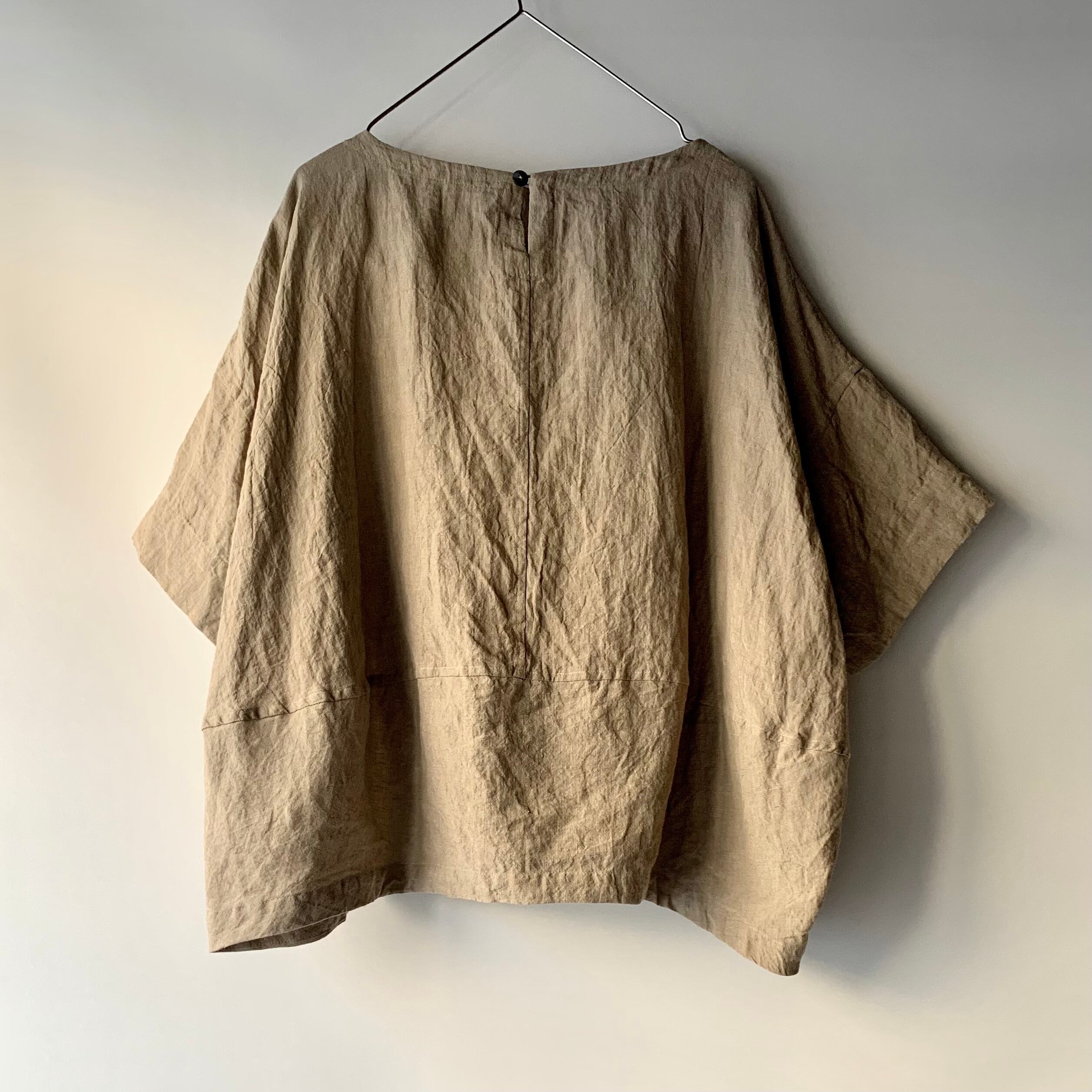 リネン ペアシェイプ 半袖プルオーバー カーキベージュ