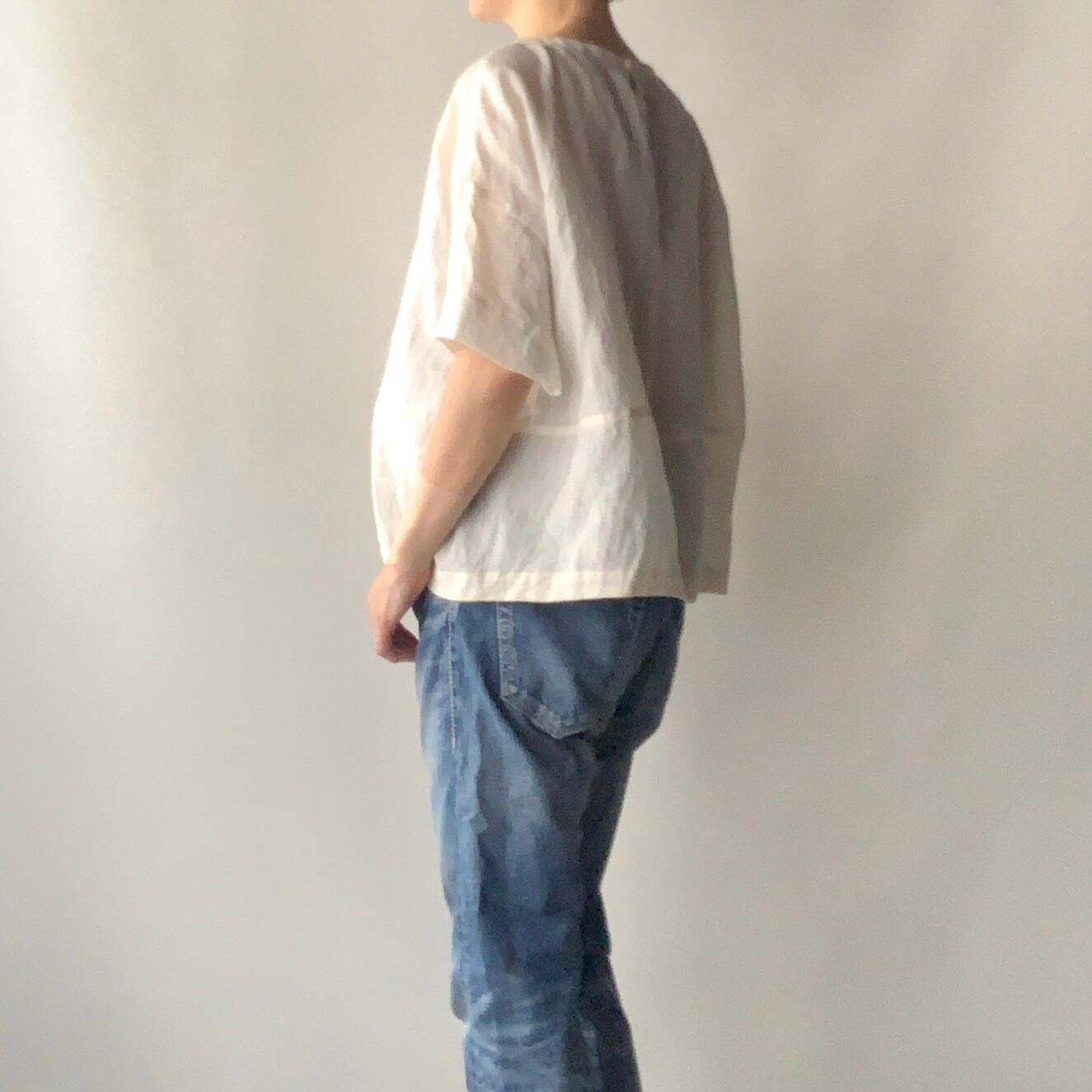 リネン ペアシェイプ半袖プルオーバー オフホワイト