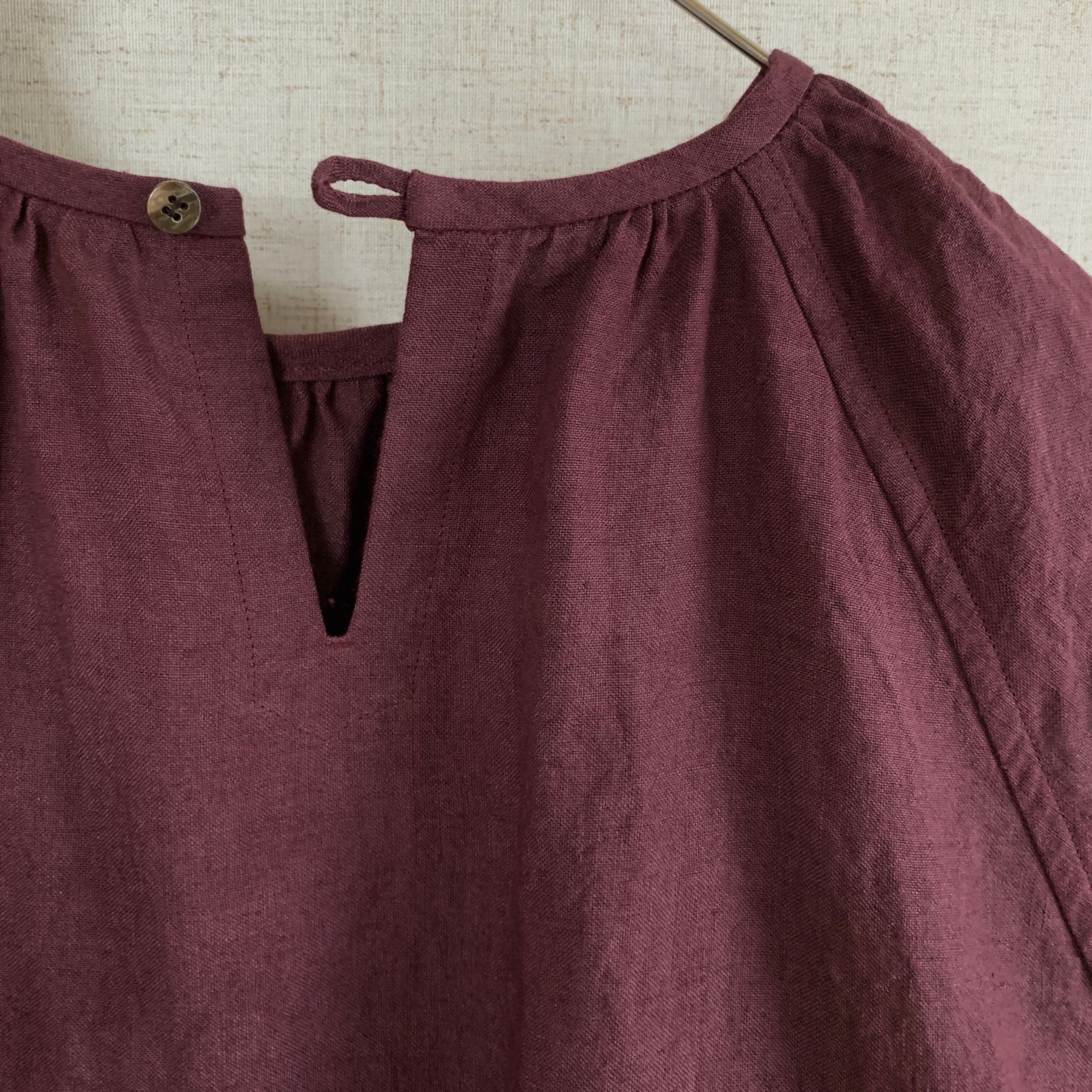 (S様ご予約分)リネン ショートラグランスリーブブラウス ワイン