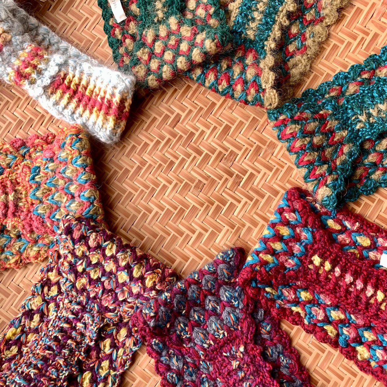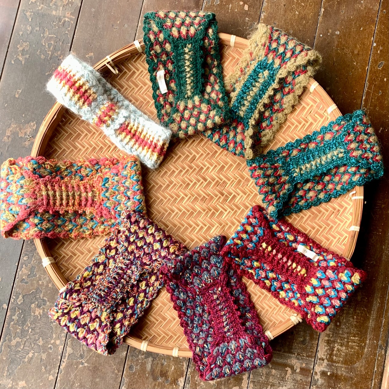 ・細巾部分も伸縮性のあるかぎ針編みを利用してゴム無しでも頭にフィットしてくれます。