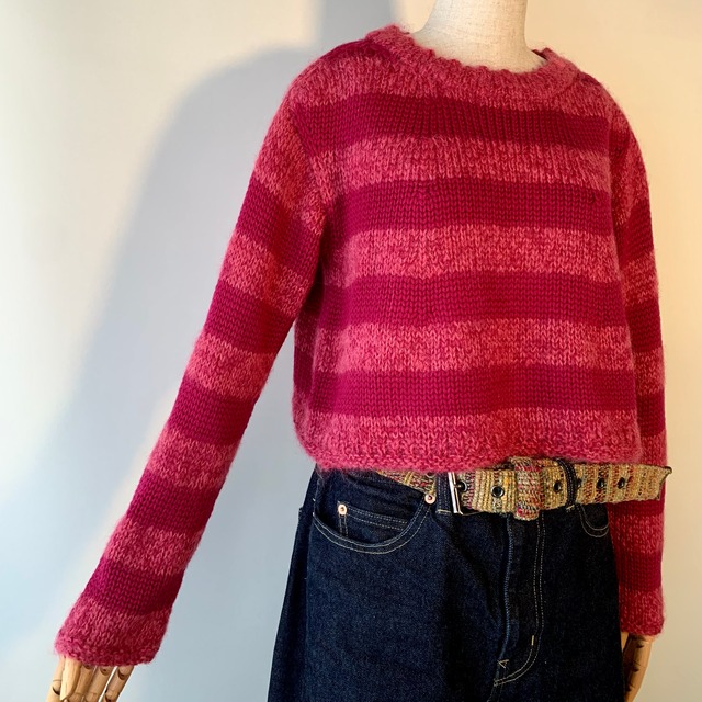 ピンク×ピンク ストライプ モヘヤ&ウール ニットトップ