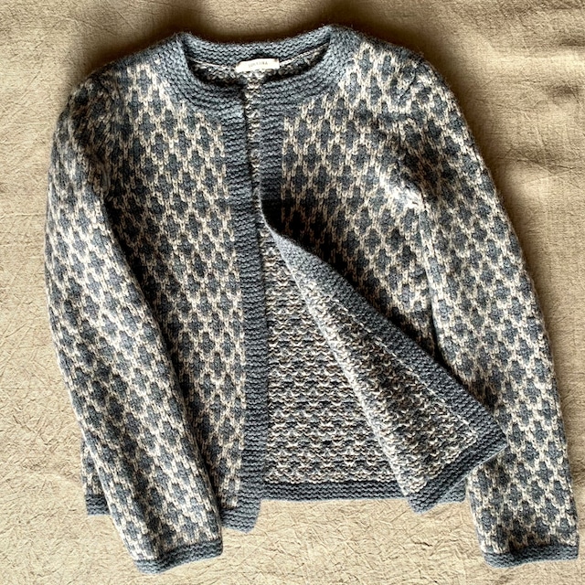 さっと羽織れる手編みのニットジャケット。 肌触りがふかふかのラムウール素材です。 滑らかで空気を含んだような温かさ、是非手に取っていただきたいニット ※2026年2月7日までの期間限定価格(送料込み) この機会に是非、肌触りの良さを羽織って実感してみてください。 46,200円 → 36,000円 ハンドニットでクロス柄を配した肌触りの心地よいやわらかい風合いの素材感。 ボタンなしで、気軽に羽織ってきちんと感が生かせるシルエットです。 いろんなボトムに合わせて楽しめます。 市販の毛糸でなく工業用の糸を使用しているので、編み上がったあとに風合いだしのためも兼ねて縮絨を行うことでサイズ調整して仕上げています。 写真で伝わりにくいかもしれませんが、全体がスモーキーなふんわりした色合いです。 ニットのチクチクが苦手な方でもほとんど違和感なく、肌触りが心地よい風合いです。 【デザイン】 ・ゆるやかにウエストを絞ったシルエット。 バストの立体感を出すために前身頃の丈を長めにして脇でいせ込んでいます。 (ダーツ替わり)ほとんど編地に吸収されるのでその操作はほぼ見た目にはわかりませんが、着用した時に優しくからだになじんでくれます。 ・肩先が少し落ち気味のセットインスリーブで、袖が細く見える割には、腕を動かす際の機能性も良好。 ・肩先から後ろ衿ぐり~反対側の肩先までをコットンのレース糸ではしごレース状に編んだテープを伸び止めと補強を兼ねて付けています。 ・ウエストはややシェイプ気味、優しくボディに沿うシルエットです。 ・ポケットなし ・裏地なし ・前あきはボタン等の留めなし お手持ちのキルトピンやブローチ等で留めていただいたりと着こなしをお愉しみください。 【素材】 ウール96%(うちラムウール68%含む) カシミヤ 4% ・編地のベージュ部分:エクストラファインウール3本とカシミヤ混ラムウール1本を撚り合わせ。 グレーのクロス柄部分:カシミヤ混のラムウール3本を撚り合わせ。 ※手動の撚糸機で撚り合わせてオリジナルの配色に組み合わせています。 編みたて直後はわりと粗野な素材感ですが、水洗いと縮絨をすることで、糸がかさを増し、ふんわりとした優しい手触りに仕上がりになっています。 ラムウール(仔羊の羊毛)は繊維が細くチクチク感が少ないのが特徴です。 普段ニットのチクチクが気になる方にもおすすめのやわらかい風合いです。 (個人差があります) 【サイズ】一般の9〜11号サイズになります。 やや11号寄りの方でも着ていただけるサイズ感です。 (下記のバストを ご確認ください) ・身丈 :前丈 約60㎝、後ろ丈 約58㎝(平置きの状態でネックポイントから) ・肩巾 :約41㎝(後ろ側で計測) ・バスト:約92㎝(全体で) ・裾巾 :約94㎝(全体で) ・袖丈 :約61㎝ ・袖巾 :約31㎝(全体で) 重さ:約390g しっかりした編地に見えて着心地が軽い仕上がりです。 【着用モデル】 ・身長:165㎝ 【お手入れ方法】 ・単独手洗い(押し洗い) 中性洗剤使用 洗濯ネット使用 *洗濯表示には手洗い表示にしていますが、洗った後のアイロン仕上げが不安な方は、ドライクリーニング店にご依頼ください。 ・手洗い後はすみやかに軽めに脱水し、形を整えて日陰に平干し (ネットに入れて極軽めに脱水機にかける、またはバスタオルなどに平置きにしてくるくると巻いて水分を取り除いてください) ・乾いたら、あて布をして1㎝ほど浮かしてスチームアイロンで形を整えると、編地がつぶれずふんわり仕上がります。 ・長時間の付け置きは避けてください。 ・乾燥機は避けて下さい。 ・毛玉ができたら、無理に引っ張らず、ハサミで切り取るか、毛玉取り機で取り除いてください。 ・型崩れを防ぐためにも、連続しての着用は避け、ふんわりたたんで平置きの状態で保管してください。 ・素材の特性上、引っ掛かりにご注意ください。 *その他、ご不明な点お気軽にお問い合わせください。